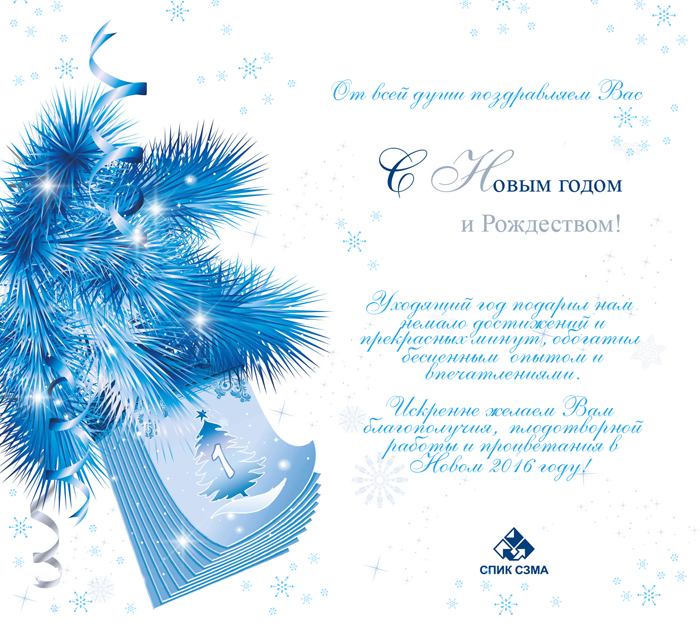 Компания СПИК СЗМА поздравляет с наступающим Новым 2016 годом и Рождеством!